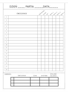 - Miejsce na zapisywanie ćwiczeń – przejrzyste ramki ułatwiające planowanie i notowanie każdego treningu.